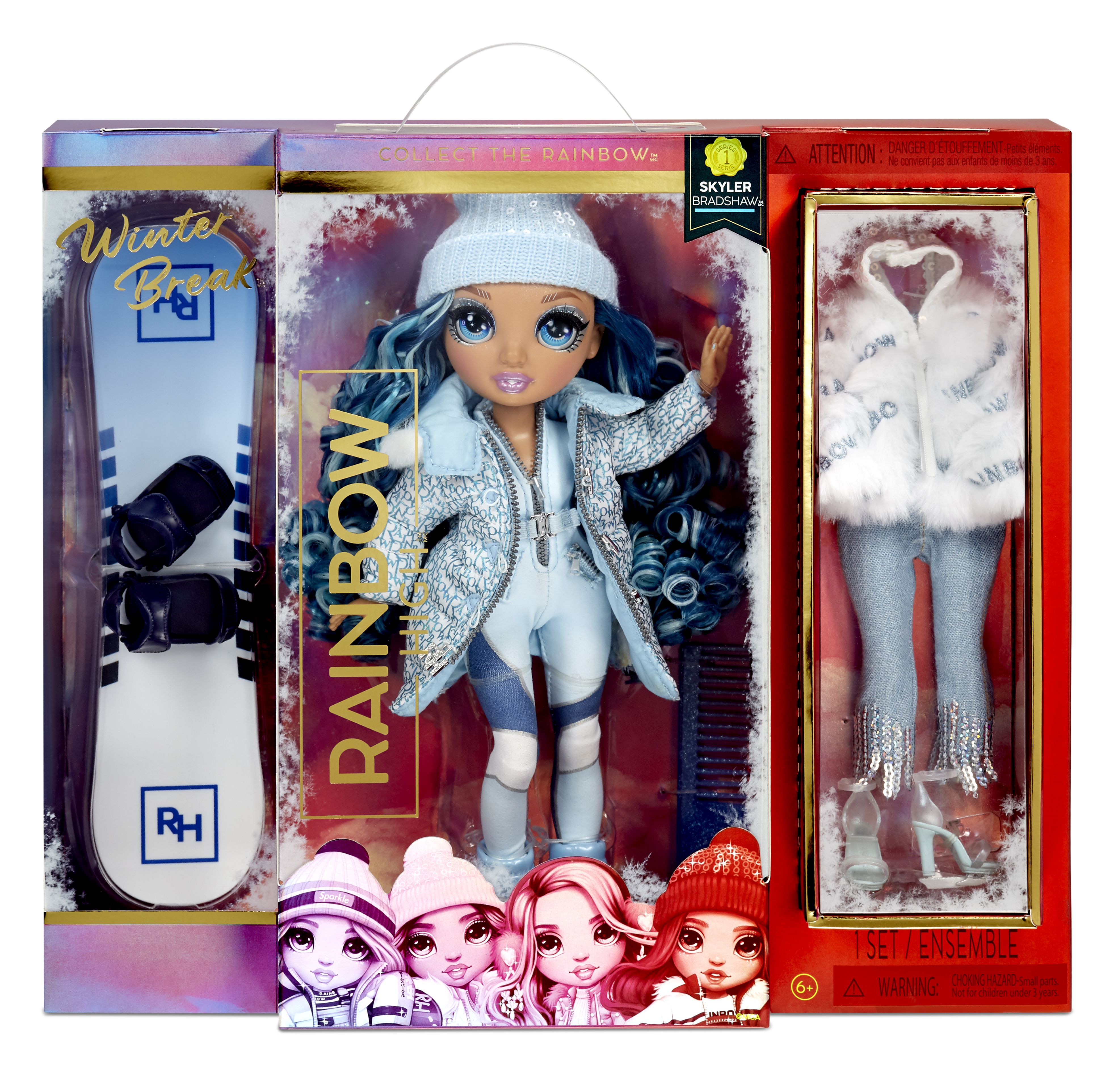 Rainbow High™ is a modern fashion doll brand that sparks imagination and encourages creativity. With Grit, Love, Action and Moxie (G.L.A.M), the students of Rainbow High combine their unique creative skills and Rainbow High Winter Break Fashion Doll Skyler Bradshaw with Accessories.